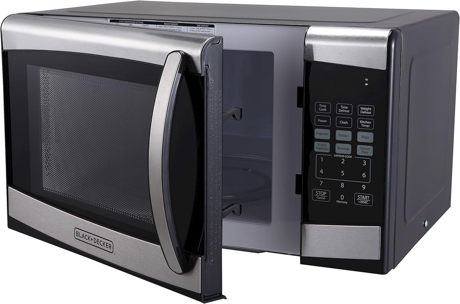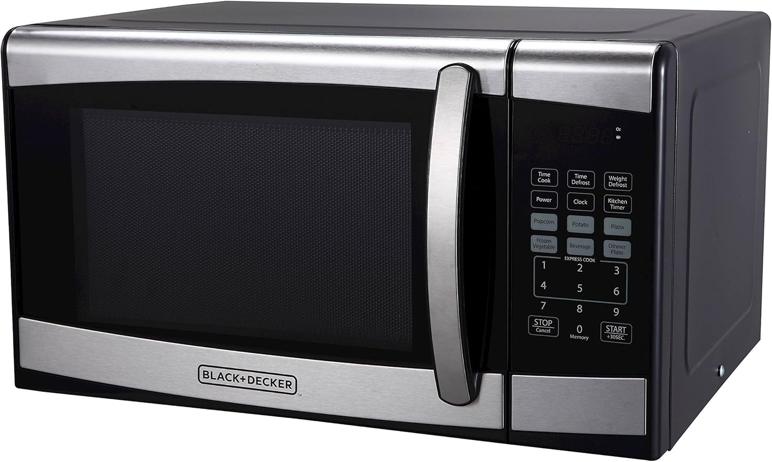 BLACK+DECKER EM925AZE-P 0.9 Cubic Foot 900 Watt Stainless Steel Microwave with Turntable, Cu.Ft, Black/Silver