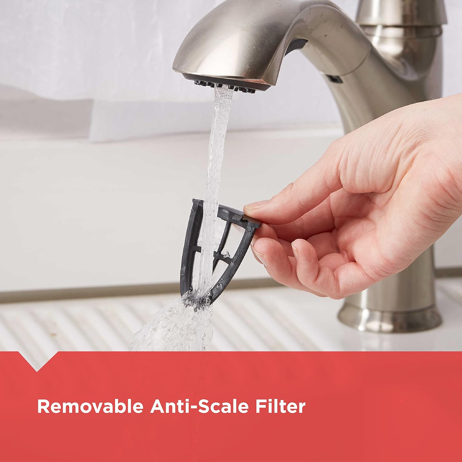 Removable Anti-Scale Filter – The filter attaches behind the pour spout to keep lime scale out of your beverages Removable for easy cleaning