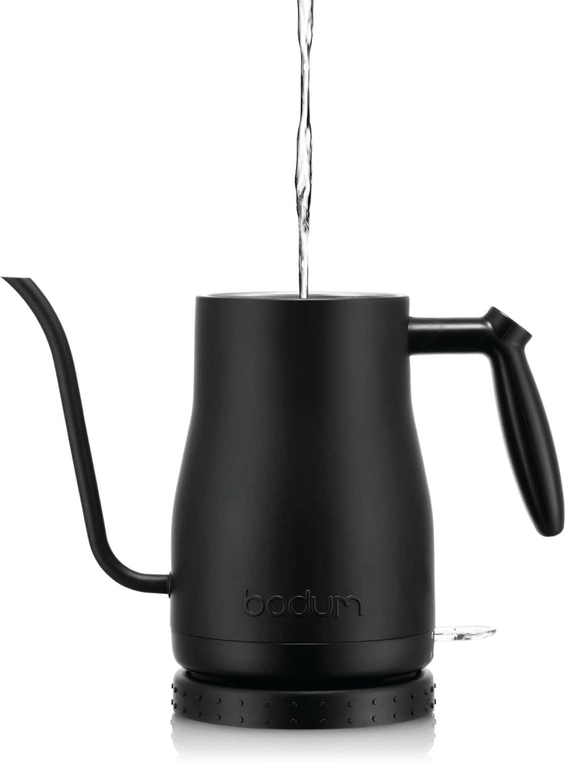 Bodum 34 oz Bistro Gooseneck Electric Water Kettle, Pour Over Coffee & Tea, Stainless Steel, Matte Black