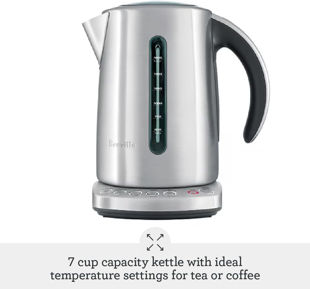The Breville IQ Electric Kettle features exact temperature times to bring out optimal taste and quality of your favorite tea or coffee