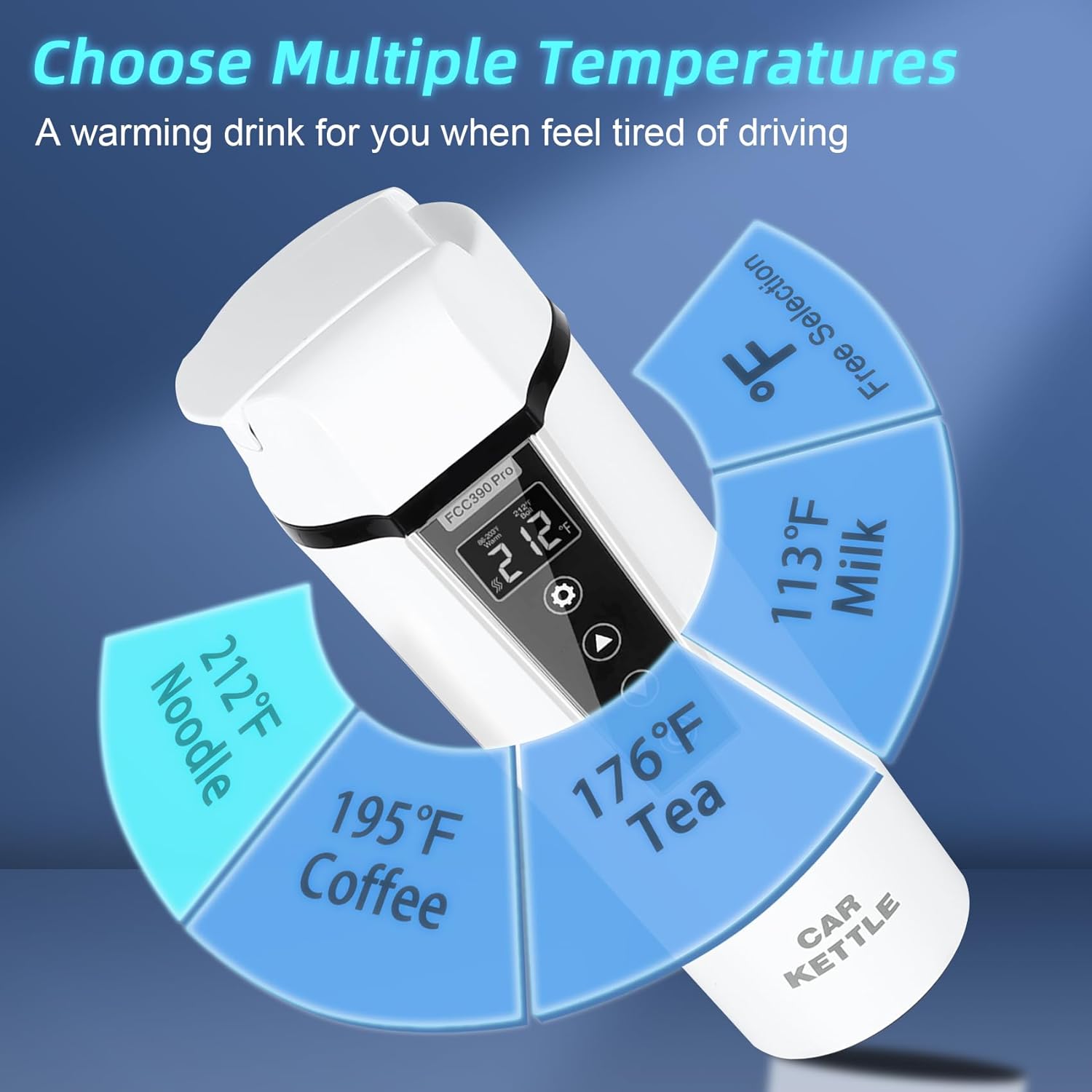 Upgrade Smart Screen- LINGYOKY 12V/24V travel kettle equipped with a large LED display. Smart touch panel buttons to set the temperature to your preference and a clear on-screen temperature display. LINGYOKY portable kettle for car will make your life smarter.