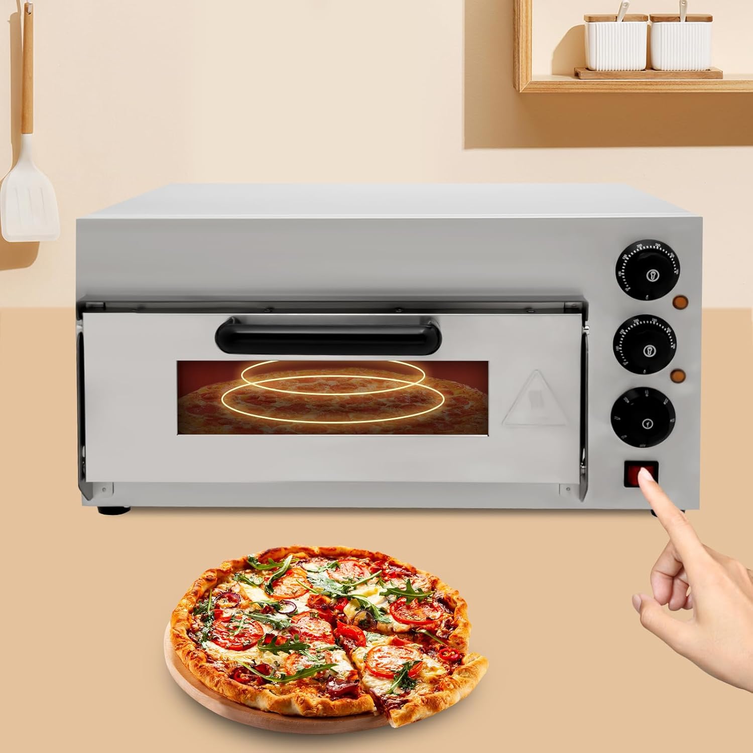 【High Efficiency】The 1.3kW high-power, dual S-type heating pipes and the cordierite slate with strong heat storage capacity, balanced heat distribution, and higher heat injection uniformity allow it to evenly bake pizza to golden and crispy in a short period, making the pizza taste more delicious.