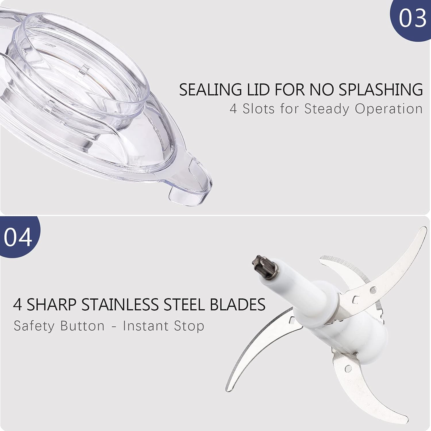 【Enjoy Different Cut Food with 2 Speeds】Speed one suits ingredients like onion, garlic, parsley, sesame and hot pepper; speed two suits for beef, pork, nuts, smoothies and baby food. You can find out how much powerful it can be in your kitchen.