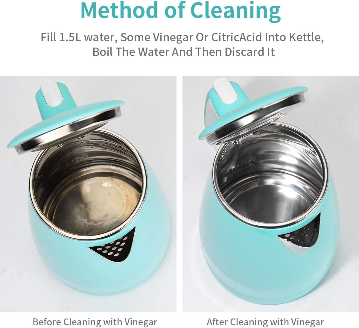 Step②: Fill 1.5L 2:1 water and some vinegar or citric acid into the kettle, boil the water and then discard it;