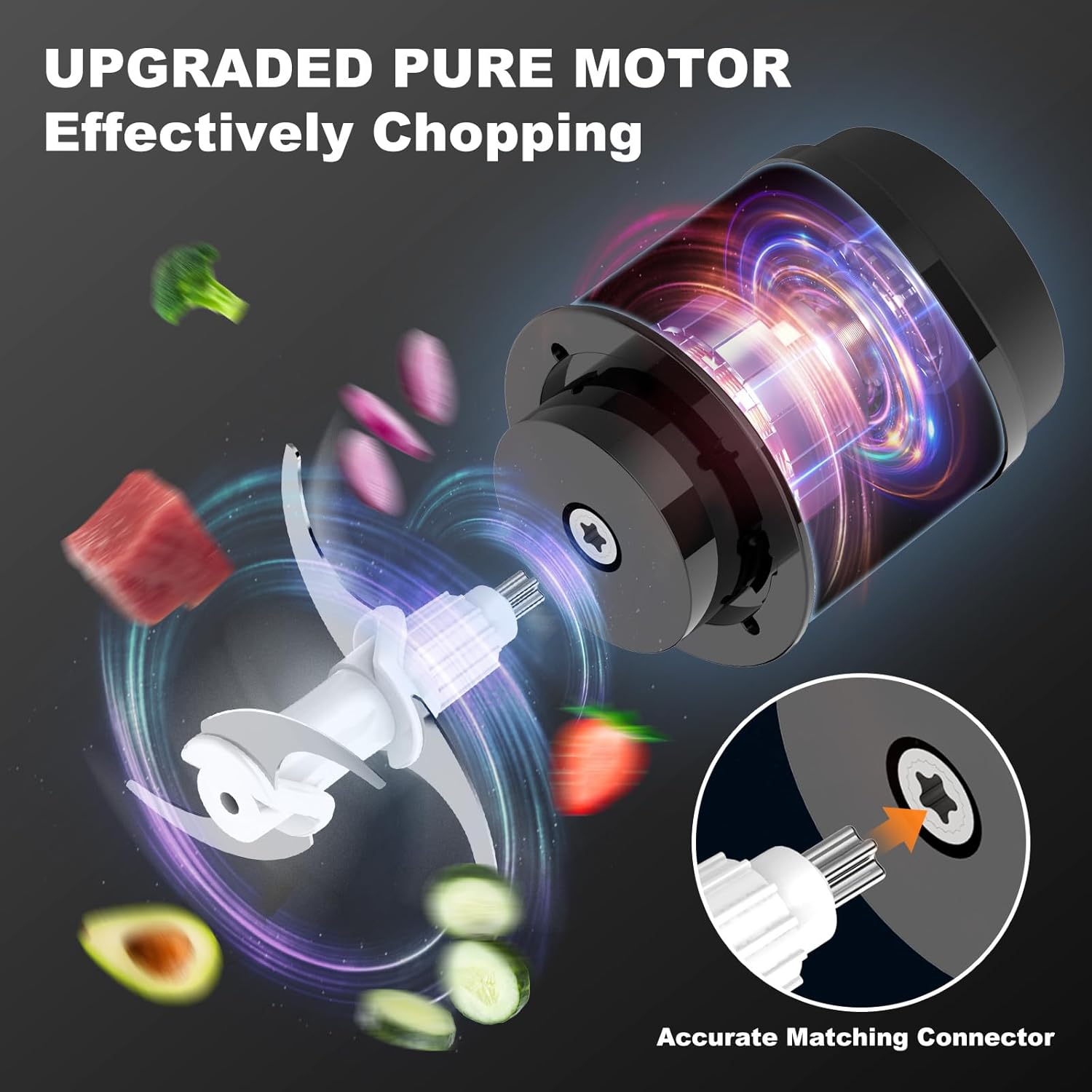 【Mini Food Processor with Powerful Motor】The The Grinder for Kitchen has upgraded 350W full-copper motor enables a 3 times longer life than regular ones. The head of procesador de alimentos electrico has a plum blossom interface to safely lock the blades. The onion chopper has a hidden safety feature that the motor only works when the head is installed properly, once you release the button or pop the motor out, it will stop grinding to avoid a mess in the kitchen. The overheat protection helps to stop at high temperature