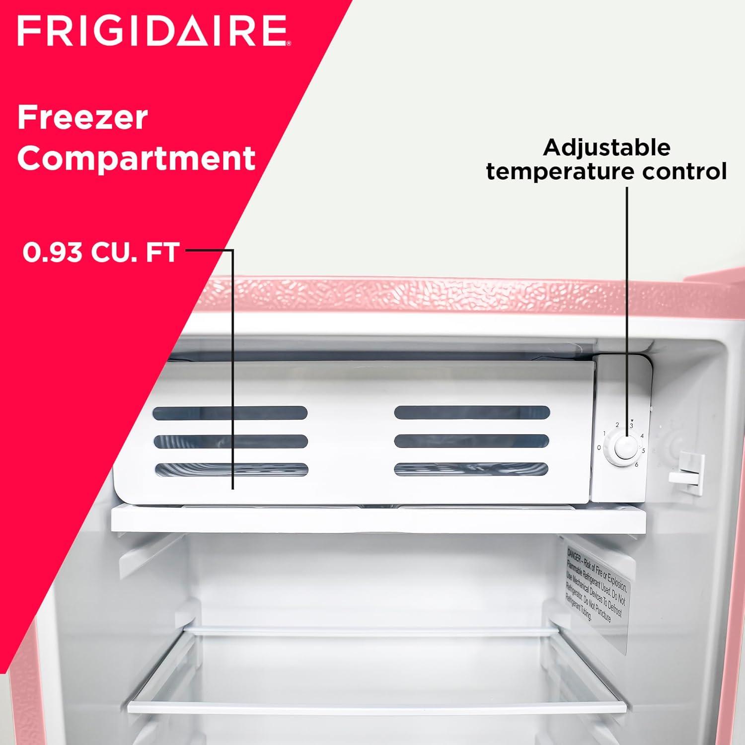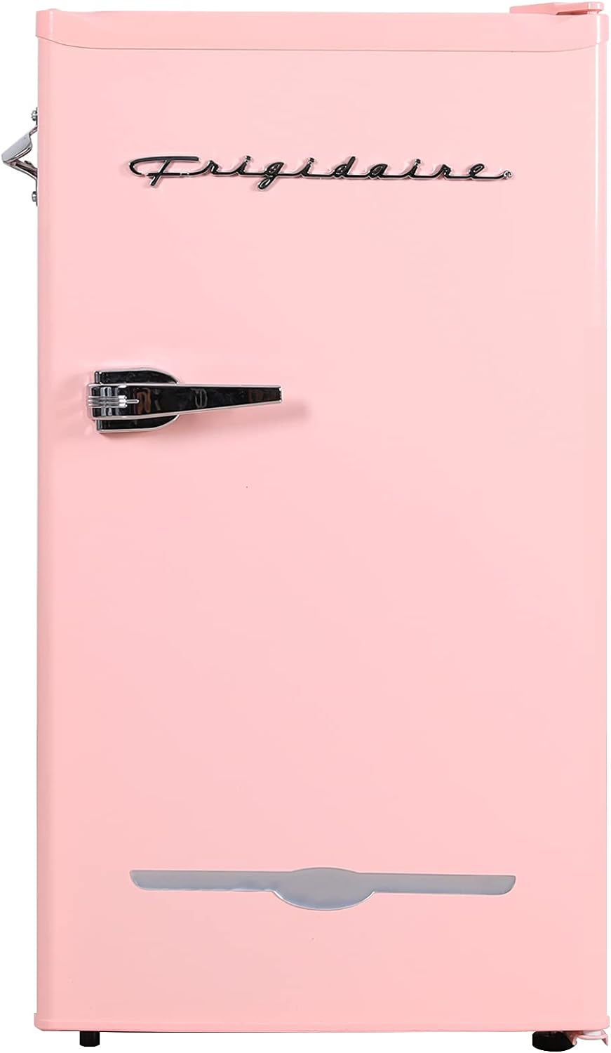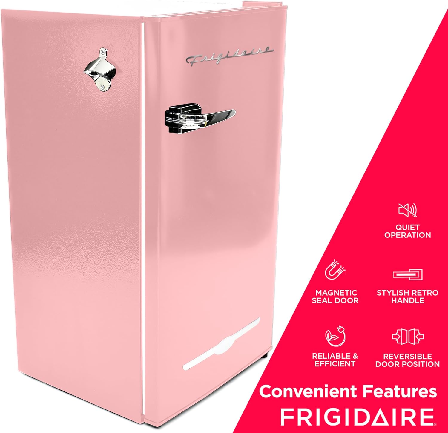 Frigidaire Retro Compact Fridge with Chiller, 3.2 cu ft Countertop Fridge with Built-In Bottle Opener, Compact Refrigerator for Office, Bedroom, Dorm Room or Cabin – 16.5″D x 19″W x 31″H (Pink)