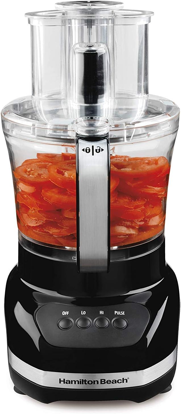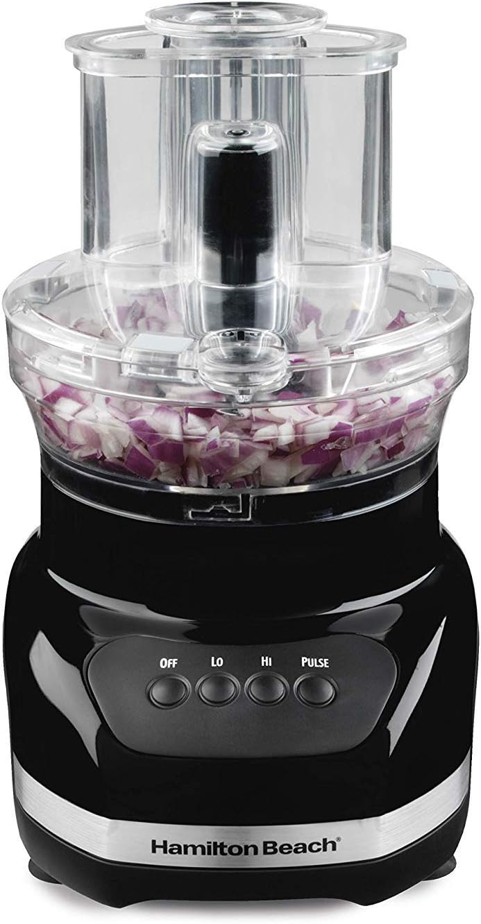 With an extra-large Feed tube, In-bowl blade storage, A powerful motor with 3 speed Plus pulse, and dishwasher-safe parts, the Hamilton Beach big mouth duo Plus 12-Cup food Processor & vegetable chopper with additional small 4-cup bowl is the ultimate kitchen appliance.