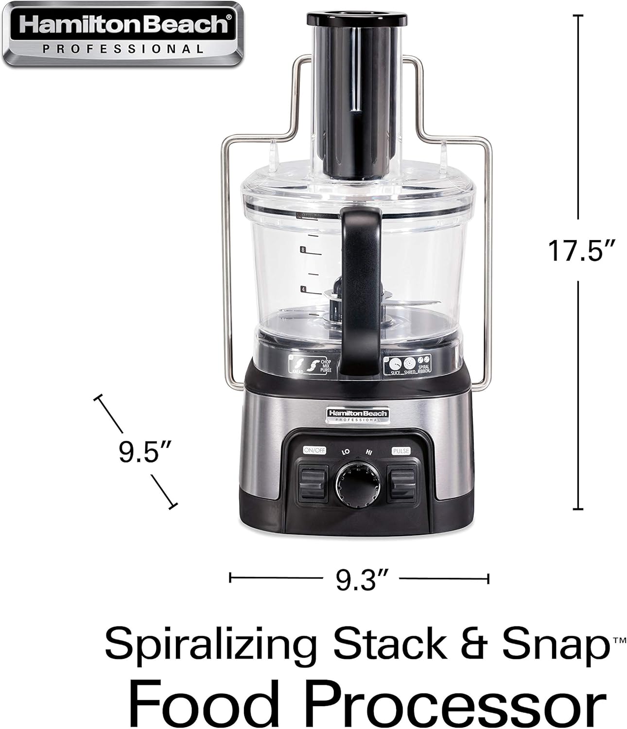 Hamilton Beach Professional Stack & Snap Food Processor & Veggie Spiralizer for Slicing, Shredding and Kneading, Extra-Large 3″ Feed Chute Fits Whole Vegetables, 12 Cups, Stainless Steel (70815)