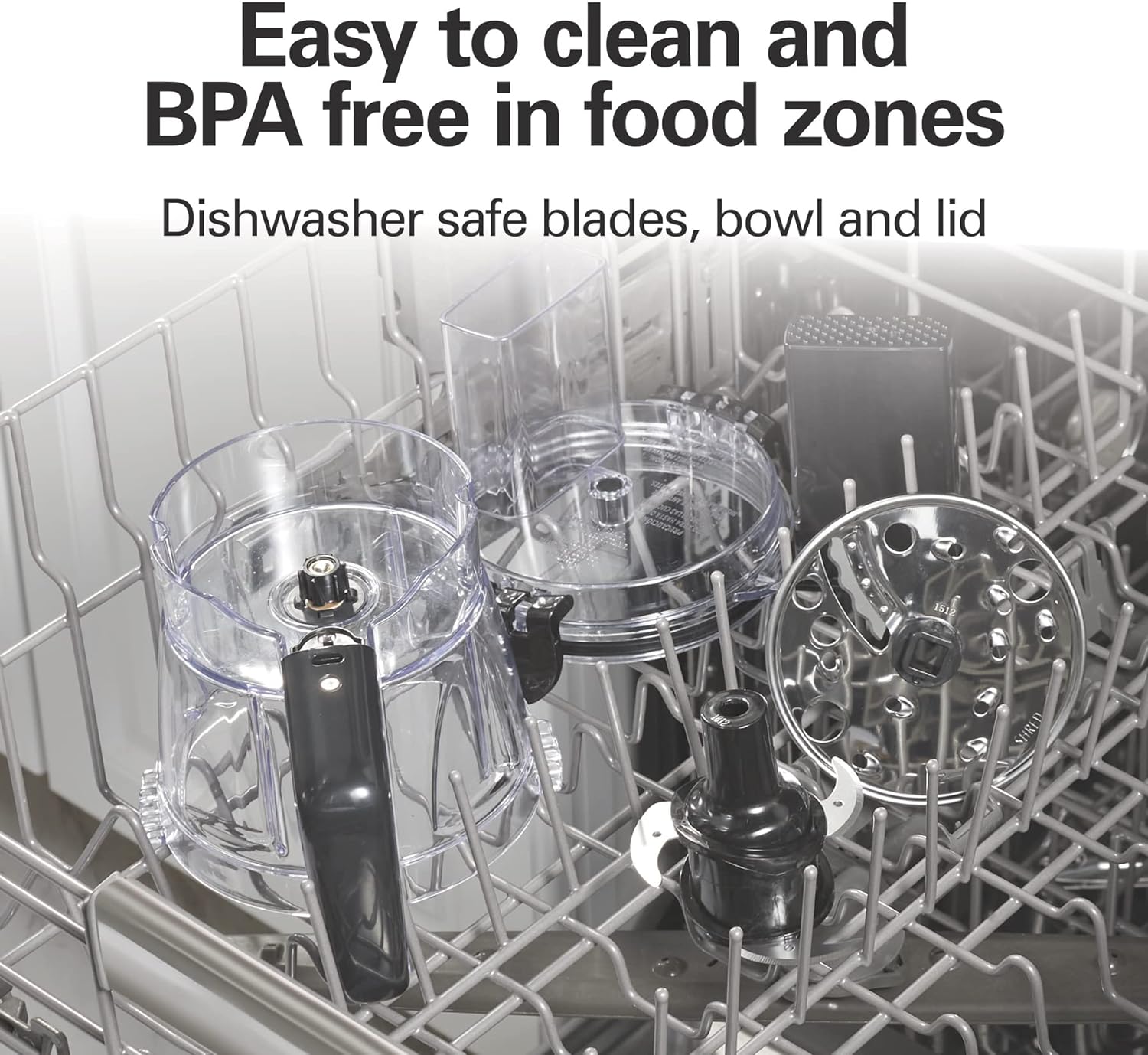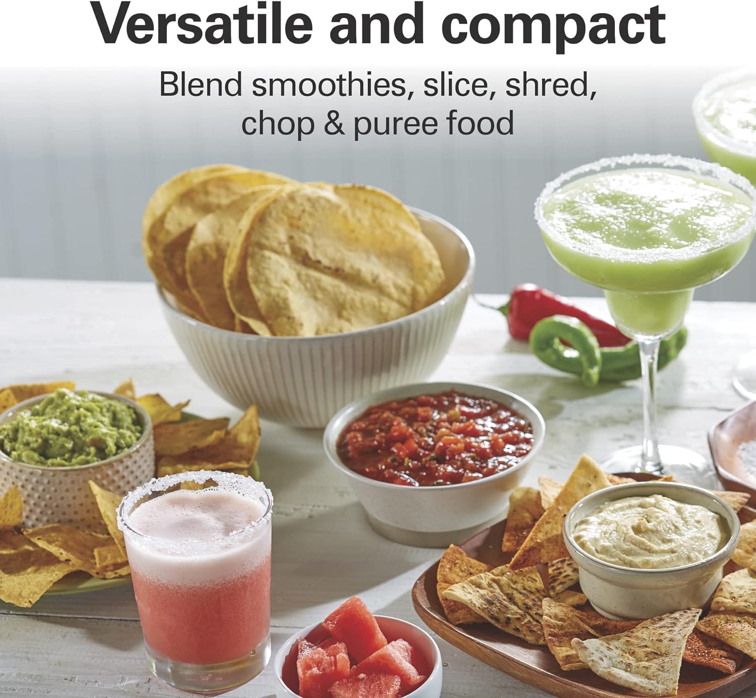 VERSATILE & COMPACT 4 CUP FOOD PROCESSOR: Chop and puree food, blend smoothies, and slice or shred vegetables and cheese with this versatile Hamilton Beach food processor. Its compact design is perfect for small kitchens.