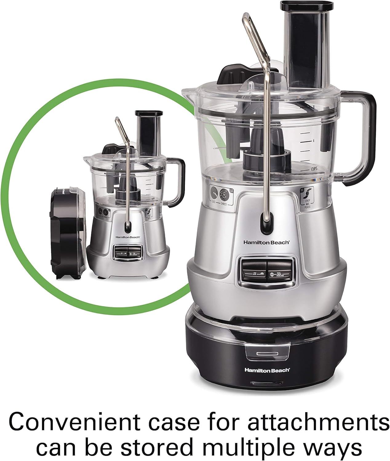 Hamilton Beach Stack & Snap 8-Cup Food Processor & Vegetable Chopper with Adjustable Slicing Blade, Built-in Bowl Scraper & Storage Case, Silver (70820)