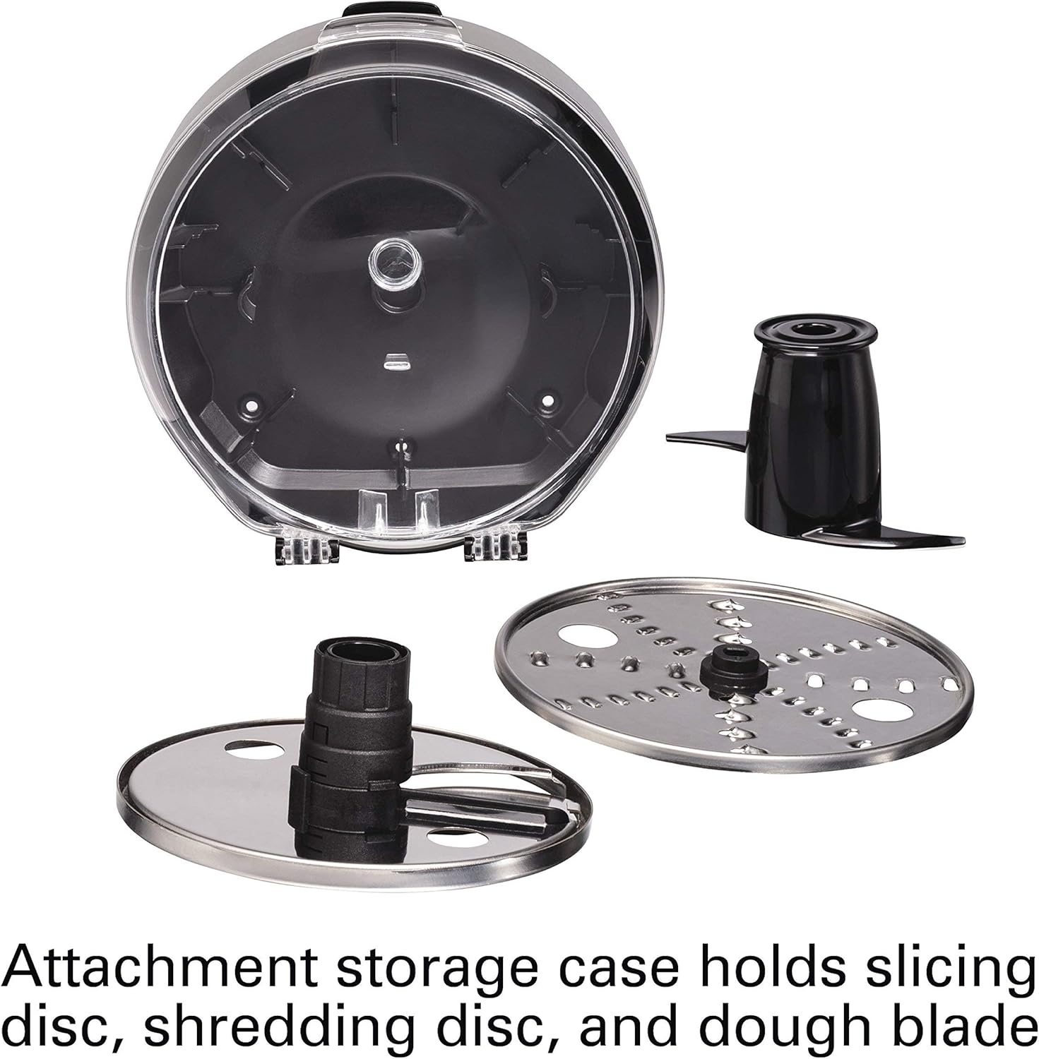 VERSATILE PROCESSING: The food processor will slice thick to thin, shred coarse or fine, chop, puree and knead. It has 4 attachments to handle all your kitchen tasks. Includes S-blade, adjustable slicing disc, reversible shredding disc and dough blade.