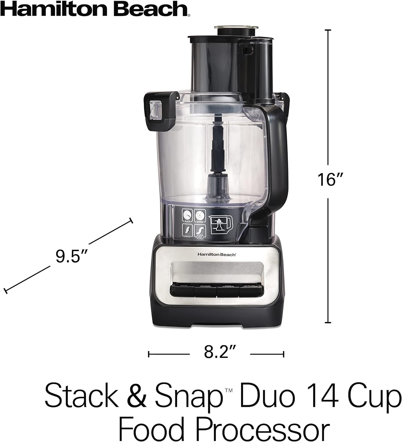 Hamilton Beach Stack & Snap Food Processor and Vegetable Chopper, BPA Free, Stainless Steel Blades, 14 Cup + 4-Cup Mini Bowls, 3-Speed 500 Watt Motor, Black (70585)
