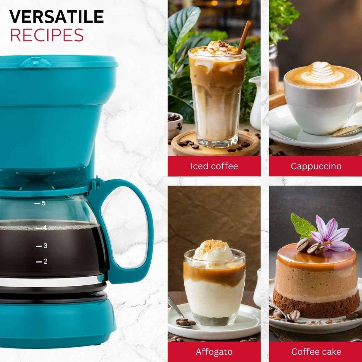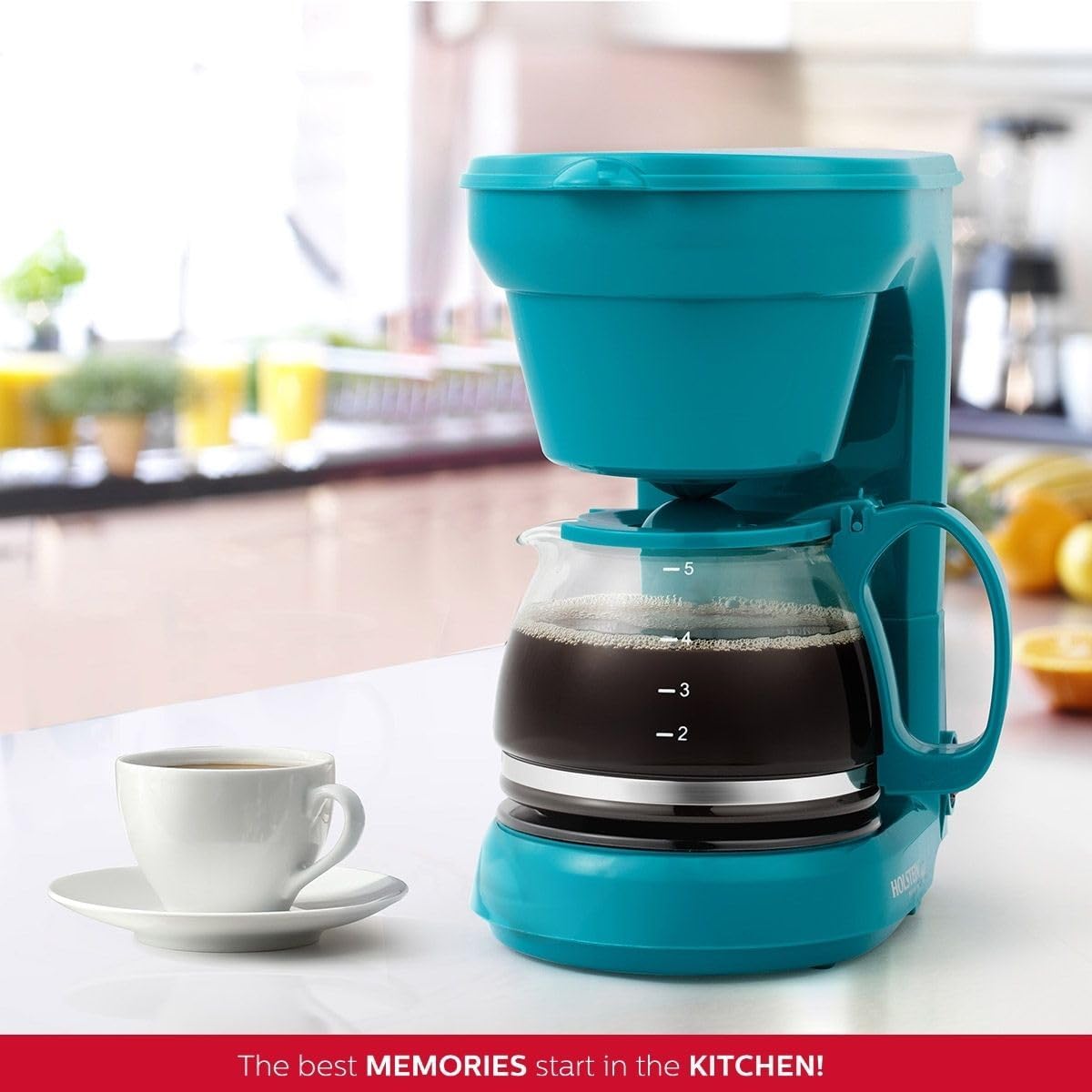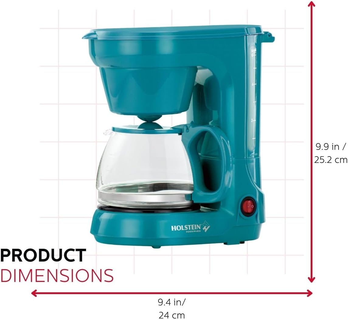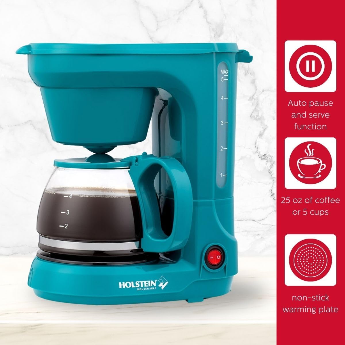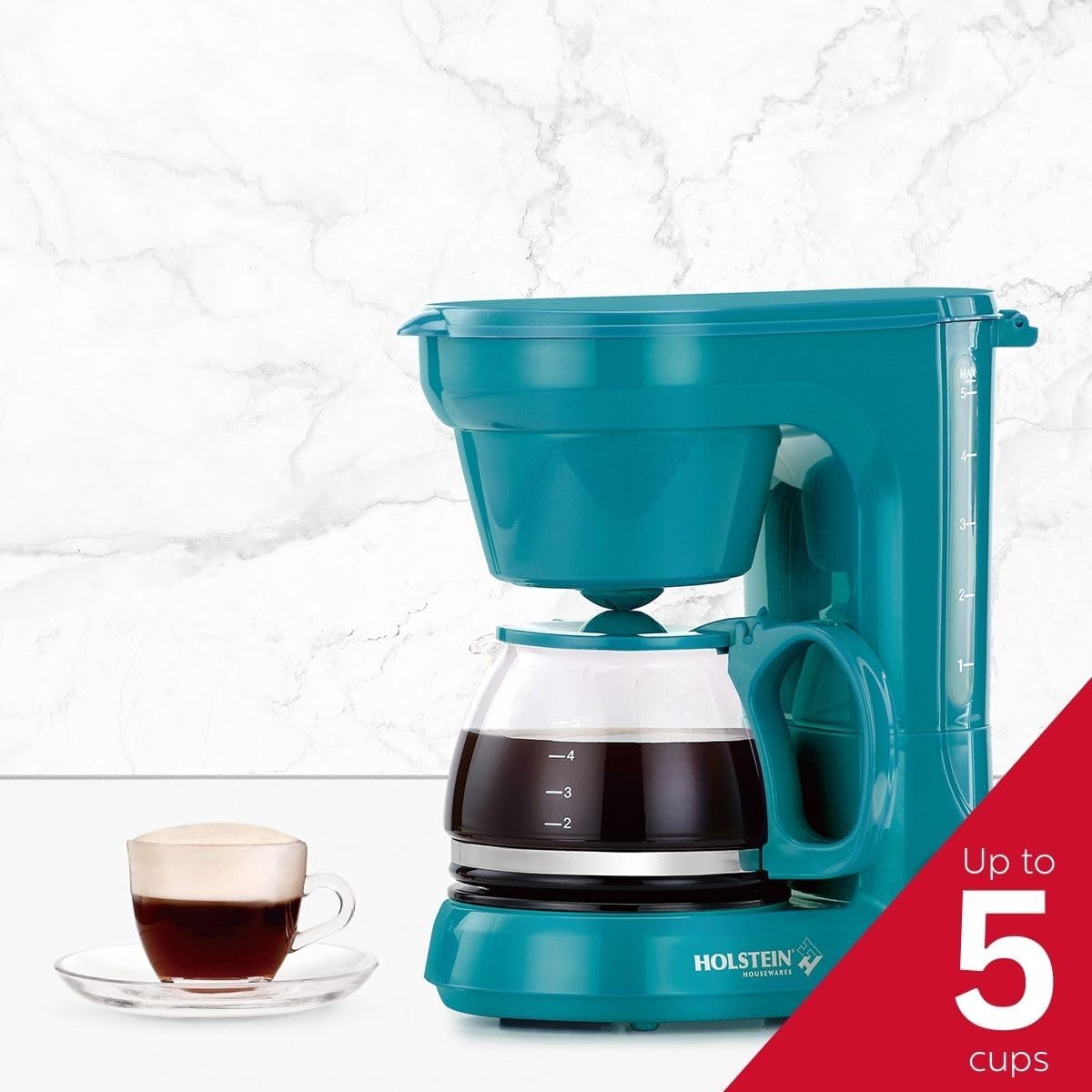 Holstein Housewares – 5 Cup Drip Coffee Maker – Convenient and User Friendly with Permanent Filter, Borosilicate Glass Carafe, Water Level Indicator, Auto Pause /Serve and Keep Warm Functions, Teal