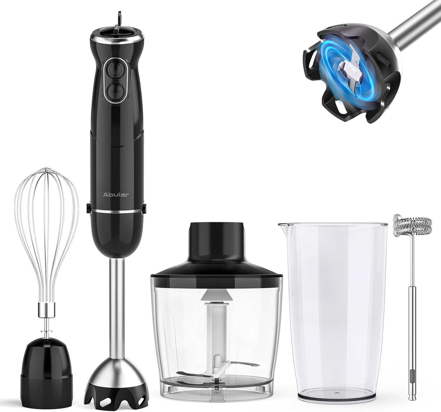 Immersion Blender Handheld, 1000W Scratch Resistant Hand Blender, Abuler 5 in 1 Emulsifier Blender Mixer, BPA-Free 12 Speed Stick Blender, Beaker, Chopper, Whisk, Frother, for Soup, Sauce (Black)