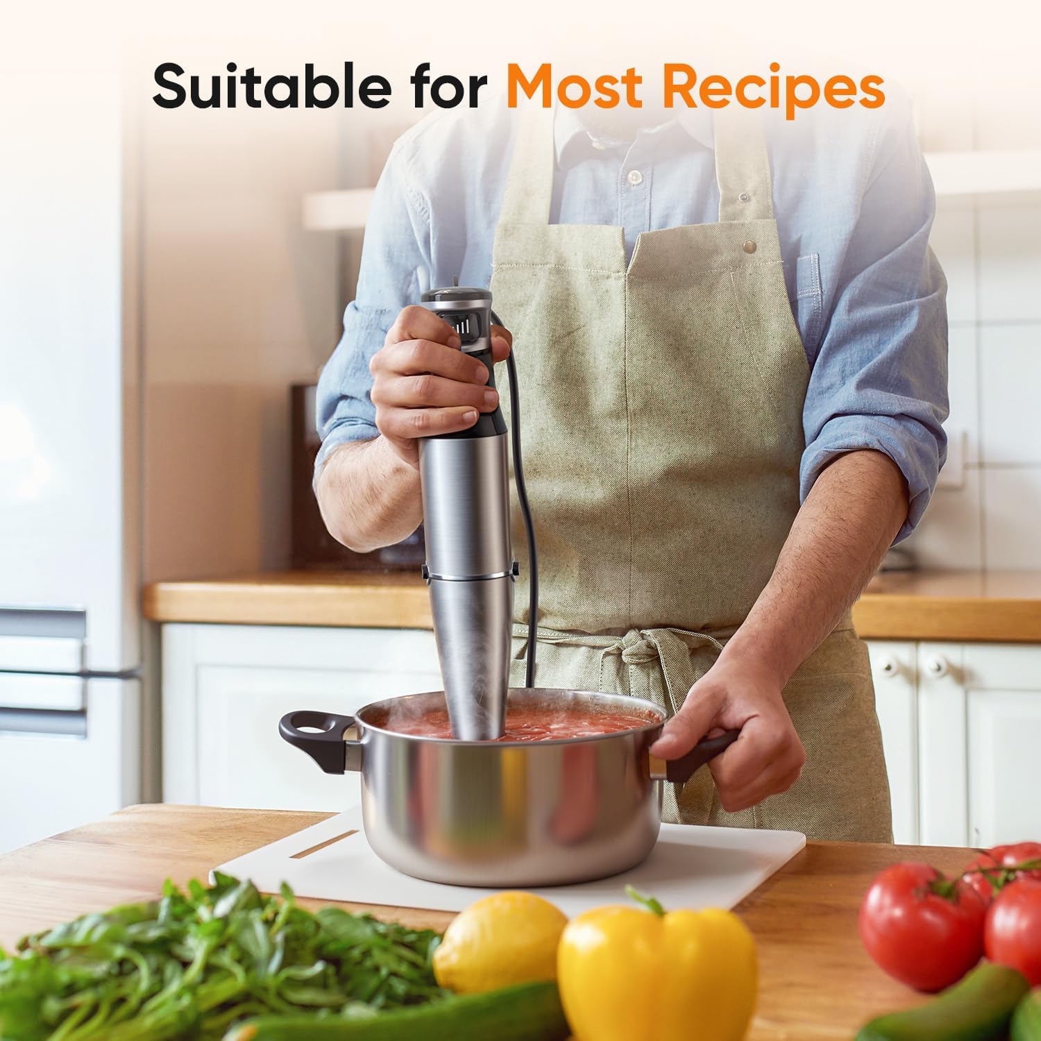One-Hand Trigger Speed Control: With a pulse-activated trigger, adjust from low to high speed by simply pressing the button to blend, puree, emulsify, or whisk with ease. This hand blender design provides precision control for perfect results while enhancing stability and comfort during use