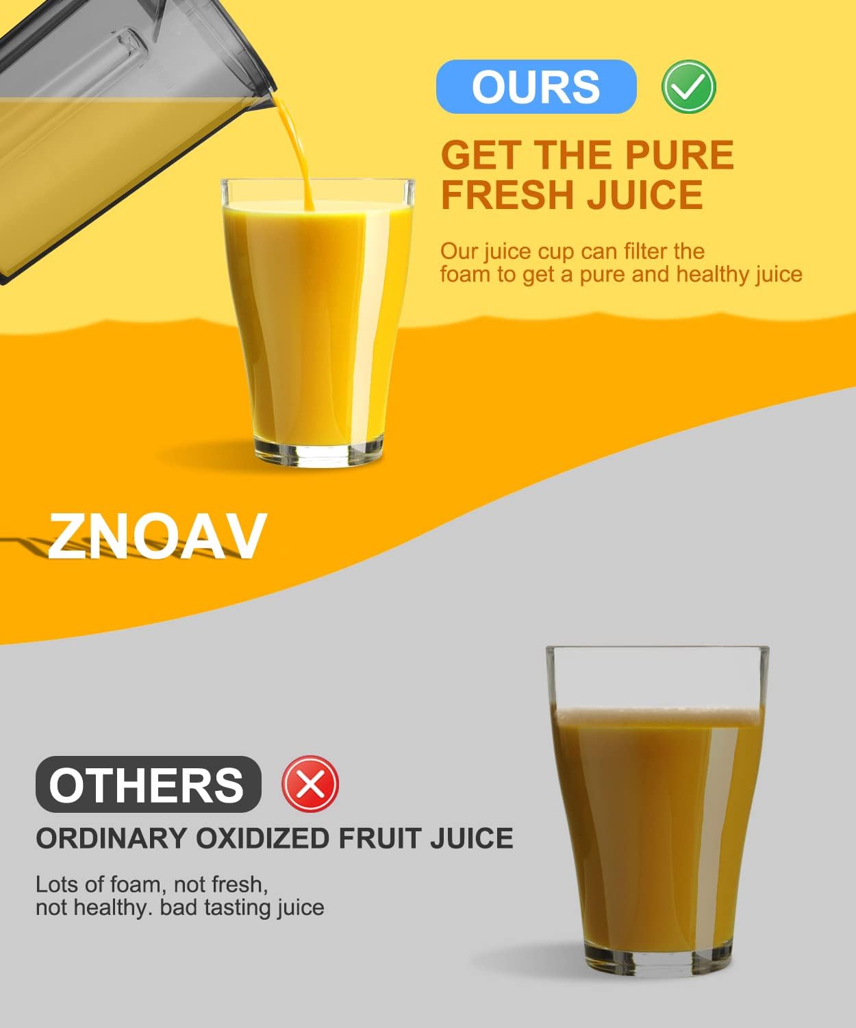 Certification & Service: ZNOAV’s juicers are UL certified for product quality and safety you can choose with confidence. We provide 24-hour online service and 12-month after-sales guarantee service. Any questions we will solve for you.