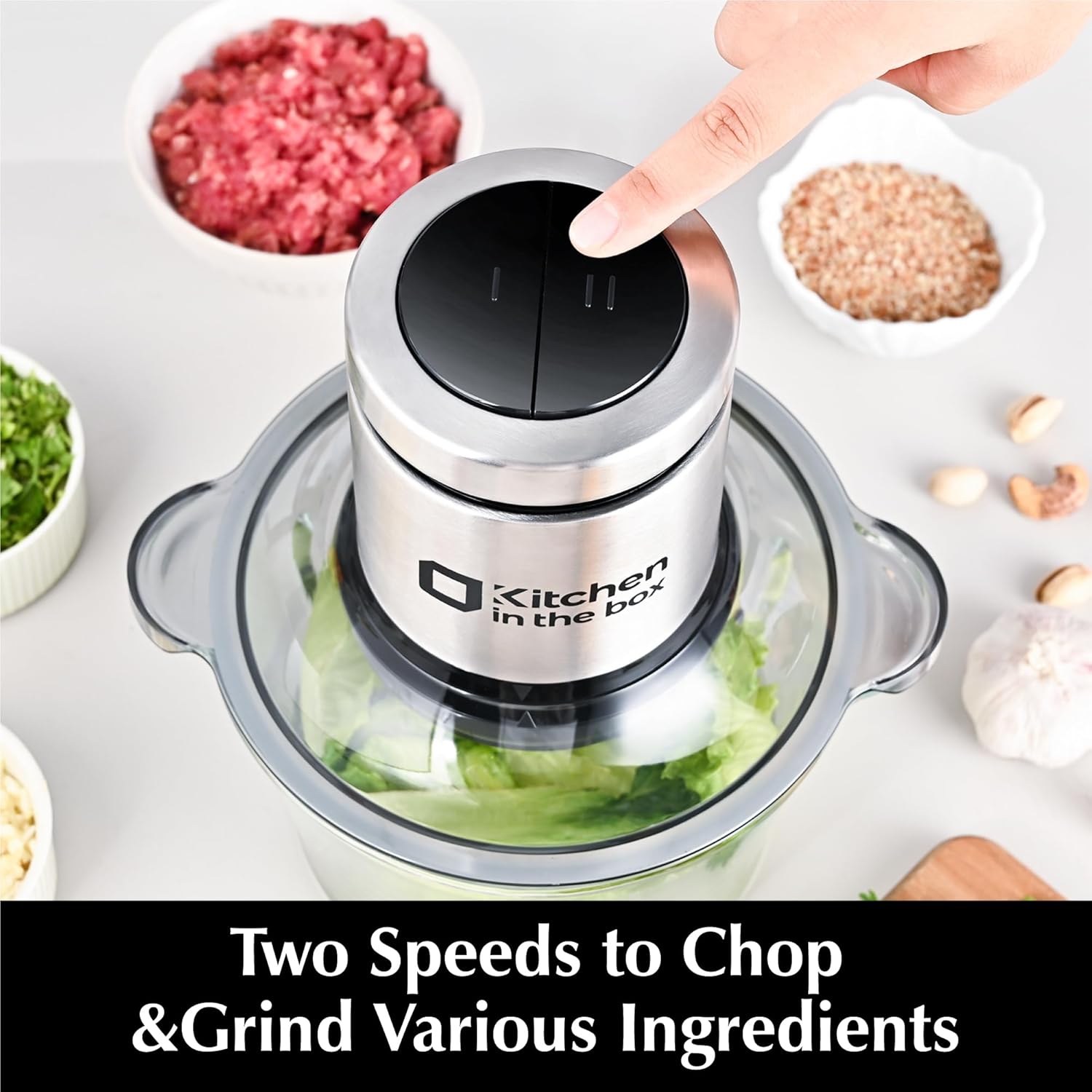 4. Two speeds control to satisfy your different chopping and grinding need