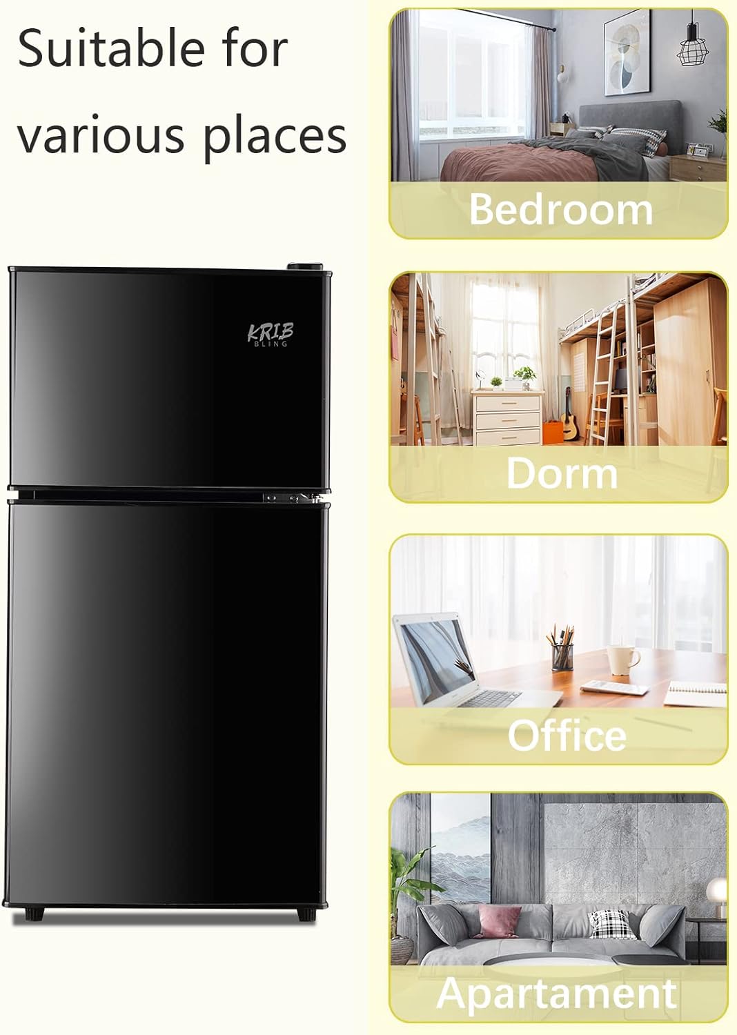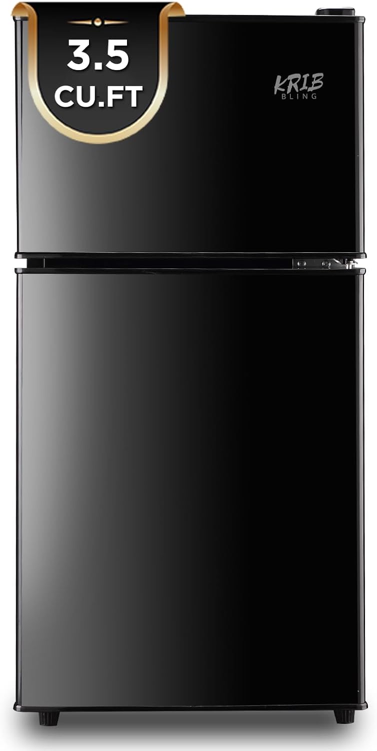 KRIB BLING 3.5 Cu.Ft Compact Refrigerator with Freezer, Retro Fridge, Mini Fridge with Two Door Design, 7 Level Adjustable Thermostat for Dorm, Office, Bedroom, Apartment, Black
