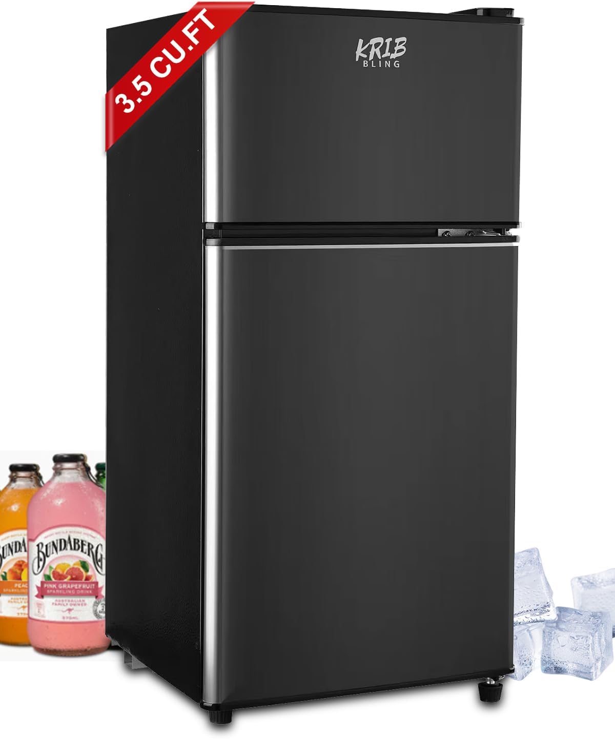 KRIB BLING 3.5 Cu.Ft Refrigerator 2 Door 7 Level Adjustable Thermostat Control Top-Freezer Refrigerator Lock Fresh Energy Saving Black (KB03-FLS-80-BLACK)