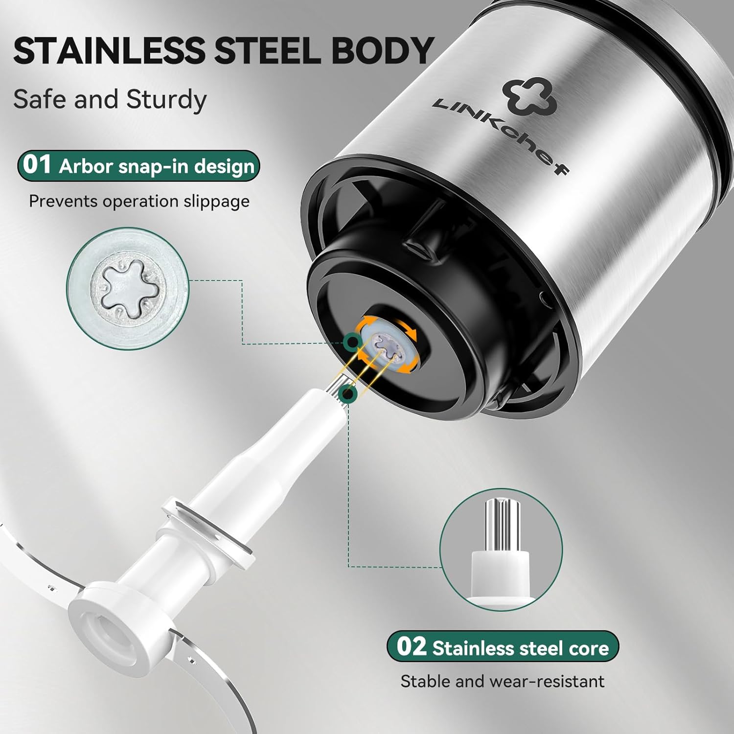 The triple thickened stainless steel bowl ensures that the food chopper is sturdy and hard-wearing. All parts are made of stainless steel/BPA-0, ensure the safety of you and your family’s daily meals.