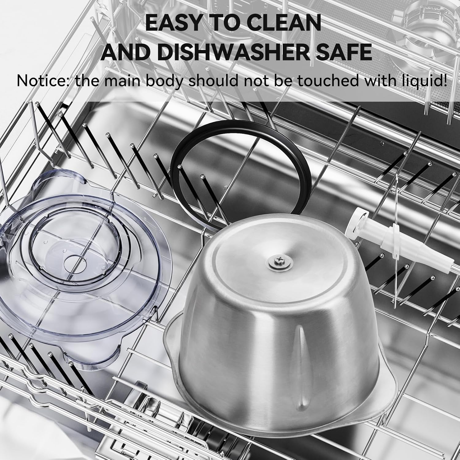 The motor part is not waterproof, please use a wet towel to wipe it! All other parts are dishwasher safe