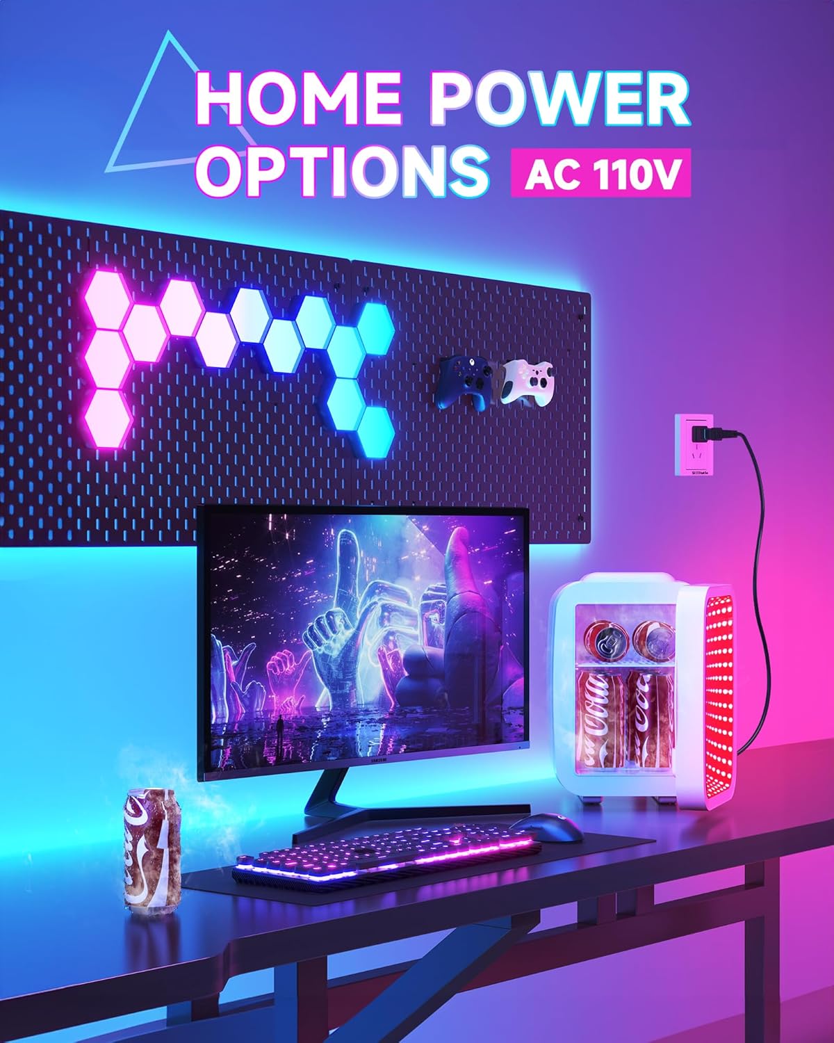 6-SPEED LIGHT ADJUSTMENT: Cool mini fridge Lighting can be adjusted freely,There are red, green, blue, purple, cyan, and yellow respectively,full of technological e-sports feeling,Has a nice clean look to it with sharp colored led lights, perfect for gamers or anyone who wants to add a fun touch to their space