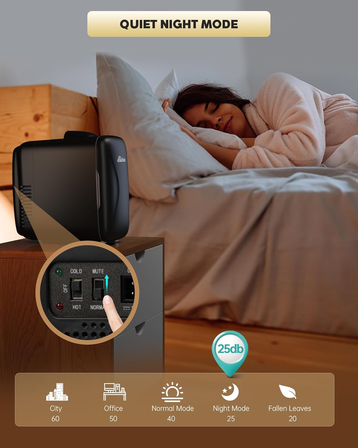 𝗘𝗰𝗼-𝗙𝗿𝗶𝗲𝗻𝗱𝗹𝘆 & 𝗤𝘂𝗶𝗲𝘁: Our mini fridge utilizes thermoelectric technology, ensuring quiet and vibration-free operation. With 100% Freon-Free and low energy consumption, it is an eco-friendly choice for your cooling and heating needs. The quiet technology minimizes sound to just 25dB, allowing you to rest easy while enjoying the convenience of a compact fridge.
