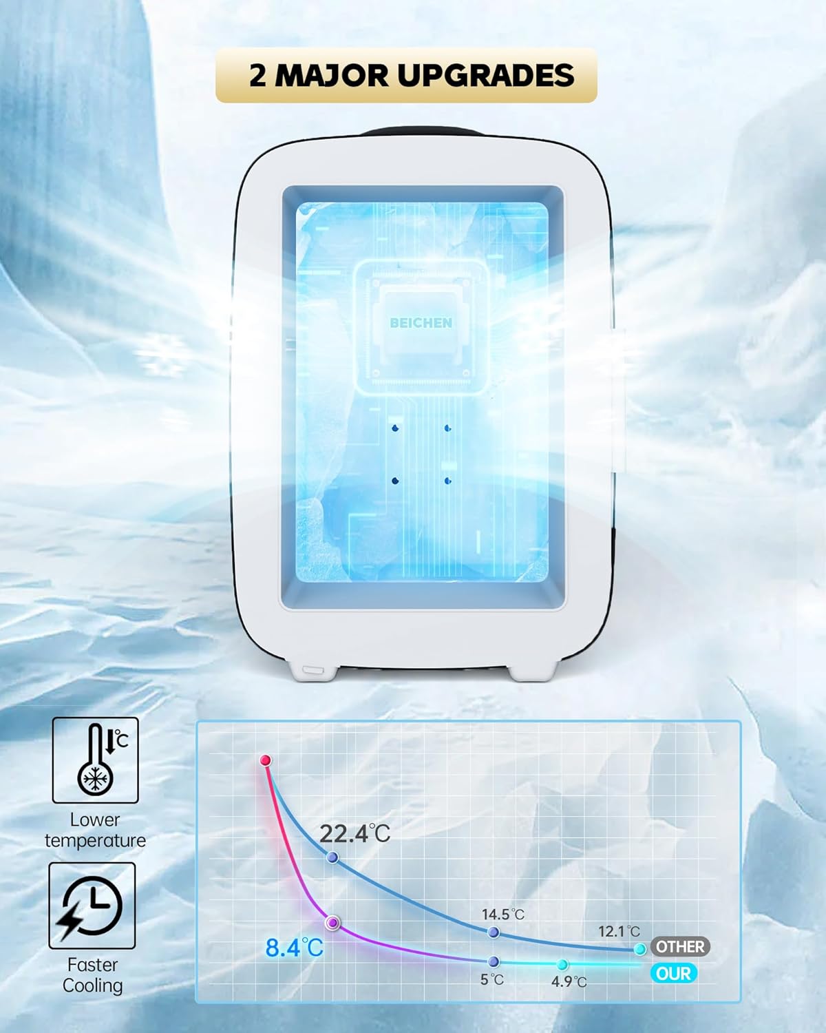 Introducing the BEICHEN Mini Fridge, the perfect solution for keeping your beverages, snacks, cosmetics, and more conveniently chilled or warm. With its compact design and versatile features, this mini fridge is an essential companion for your bedroom, office, dorm room, travel adventures, boating trips, camping excursions, and beyond. Experience the convenience of having cold drinks or snacks within reach while playing computer games or working long hours.
