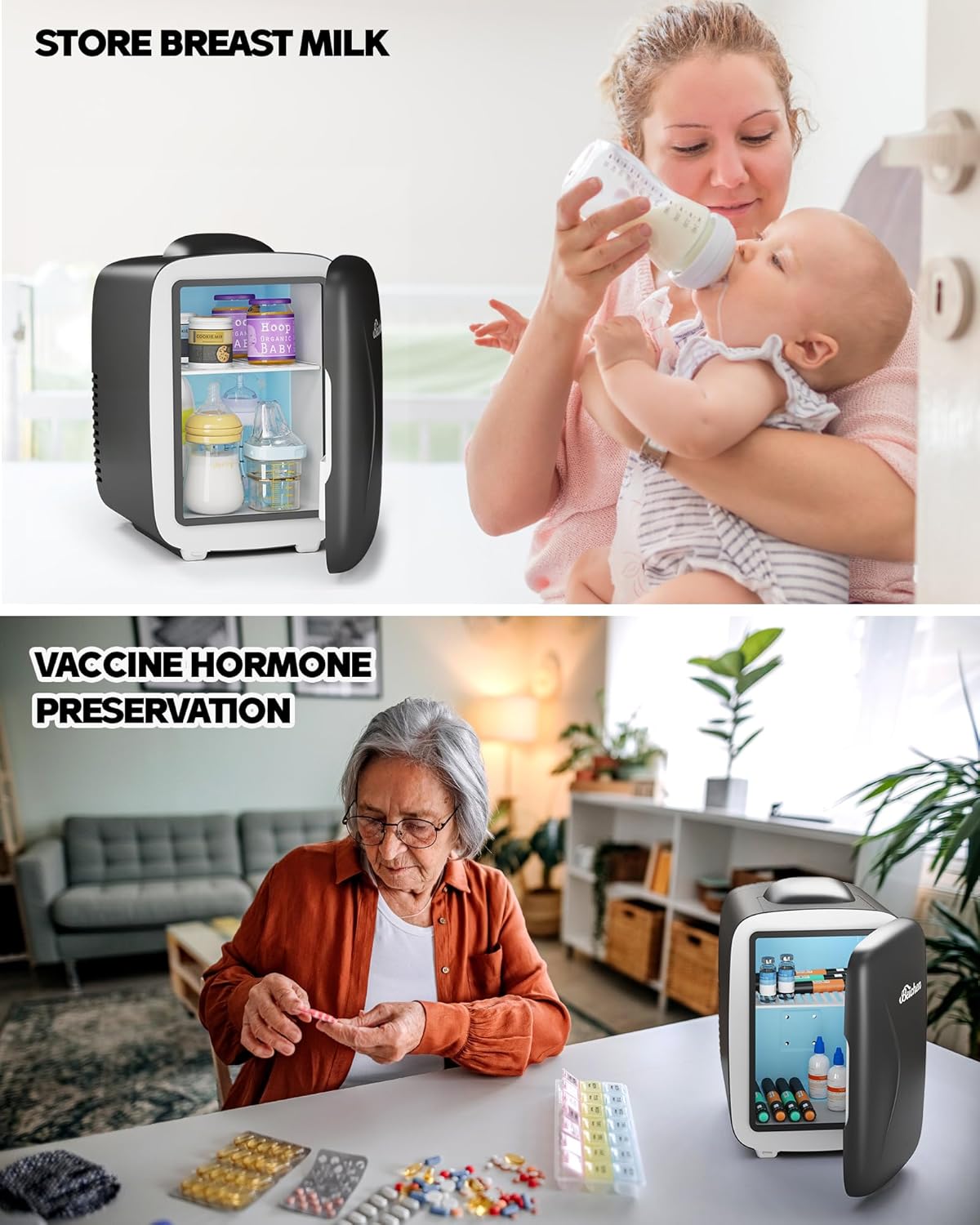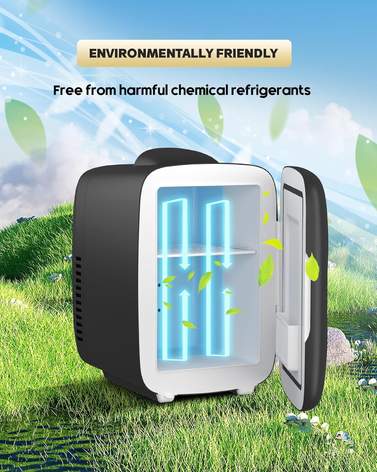 Mini Fridge [Upgrade], Small Fridge Rapid Cooling 4 Liter/6 Cans Skincare Fridge, Cooler and Warmer Refrigerators for Bedroom, Cosmetics, Office and Car (Black)