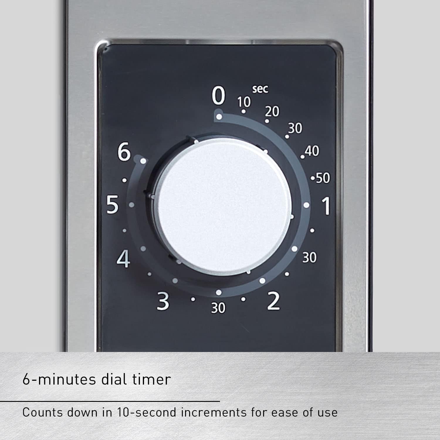6-MINUTE ELECTRONIC DIAL TIMER User-friendly dial timer counts down in 10-second increments; Timer resets automatically after countdowns