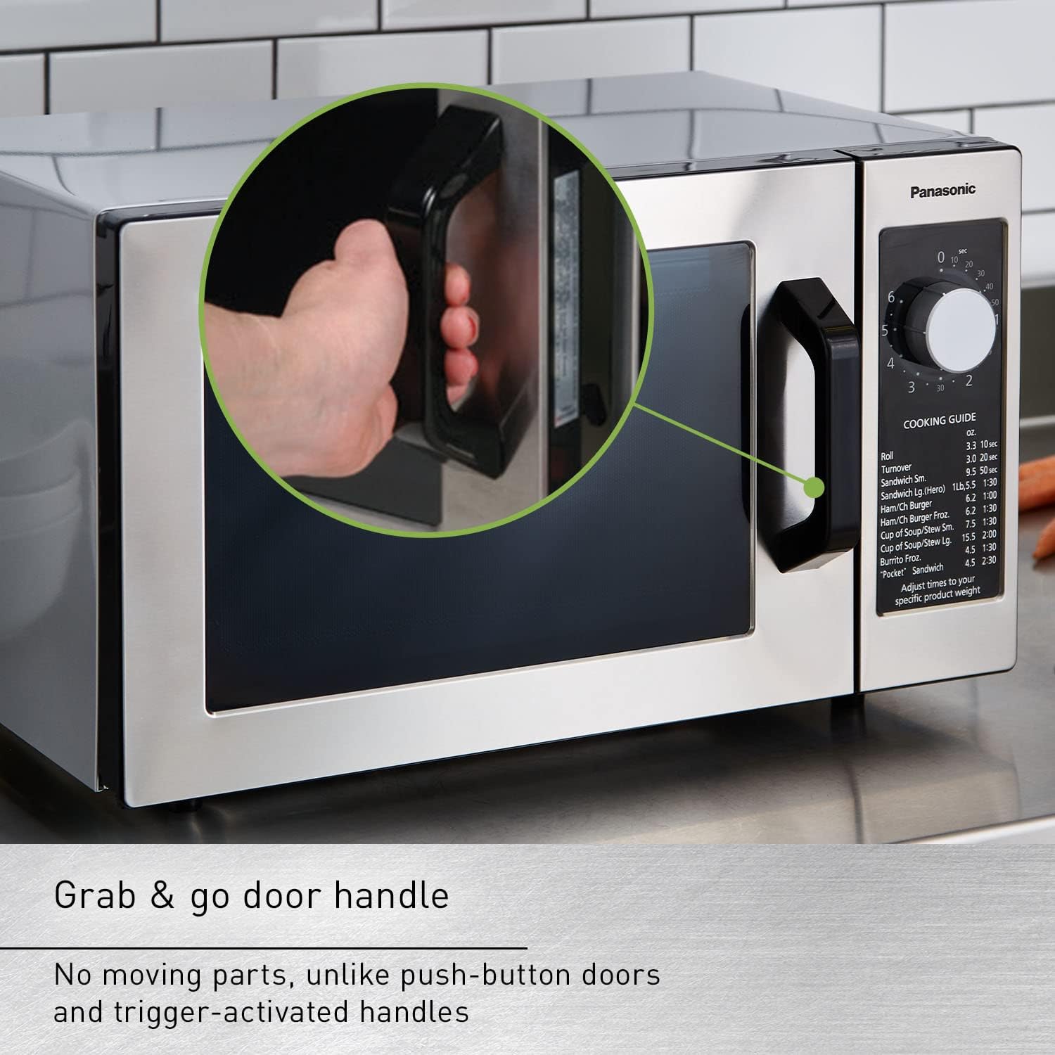 GRAB & GO HANDLE ON STAINLESS STEEL DOOR Ensures fast, smooth, long-lasting performance; Commercial microwave oven also features see-through oven door, interior light and anti-theft component, and chef technical support is available