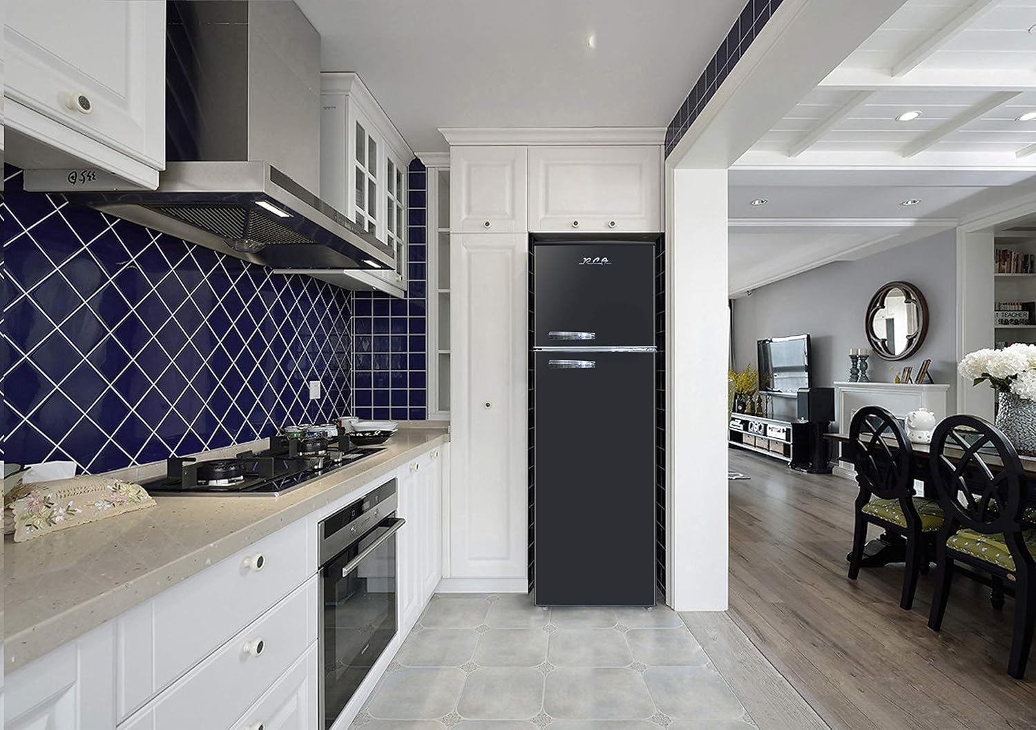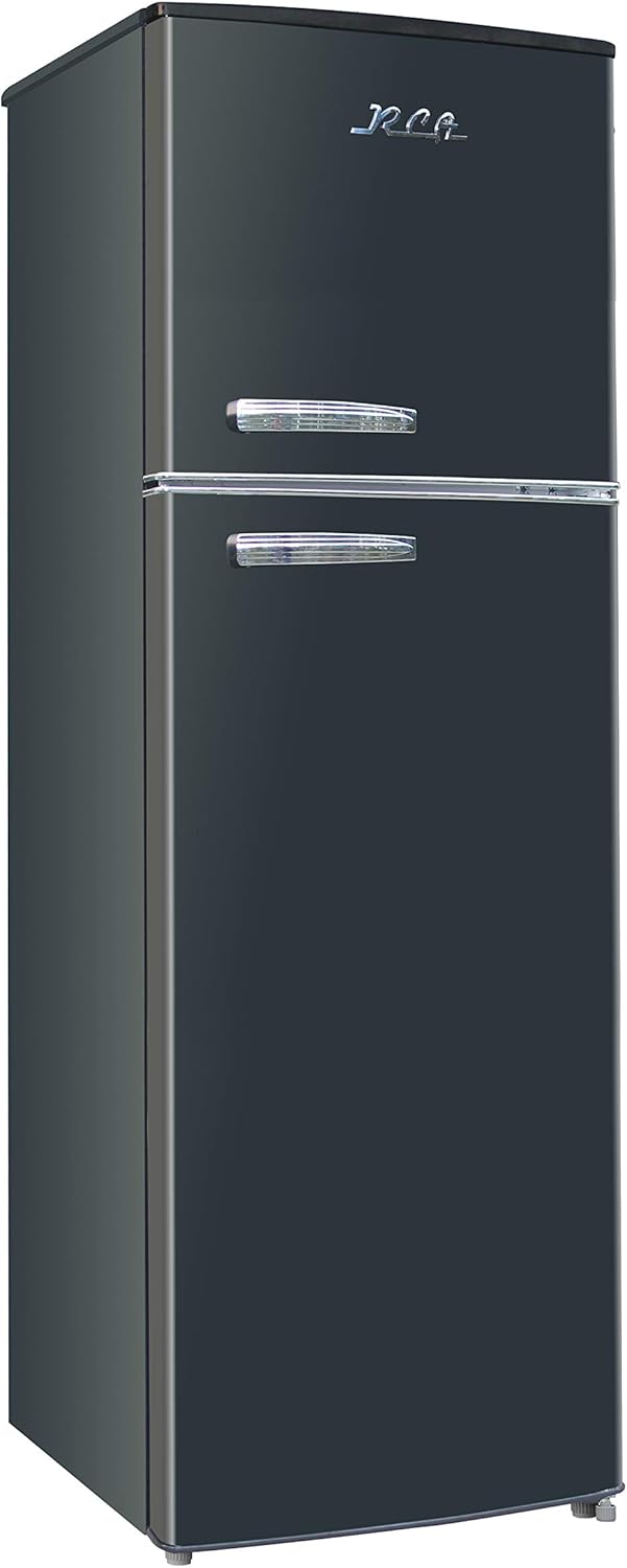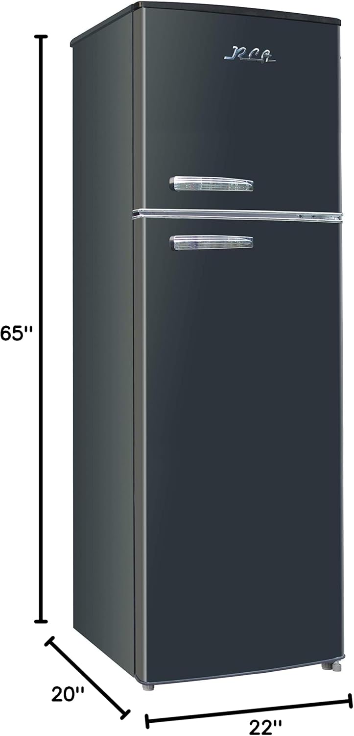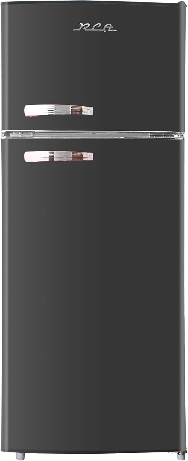 RCA RFR1055-BLACK, Retro 2 Door Apartment Size Refrigerator with Freezer, 10, Black, cu ft