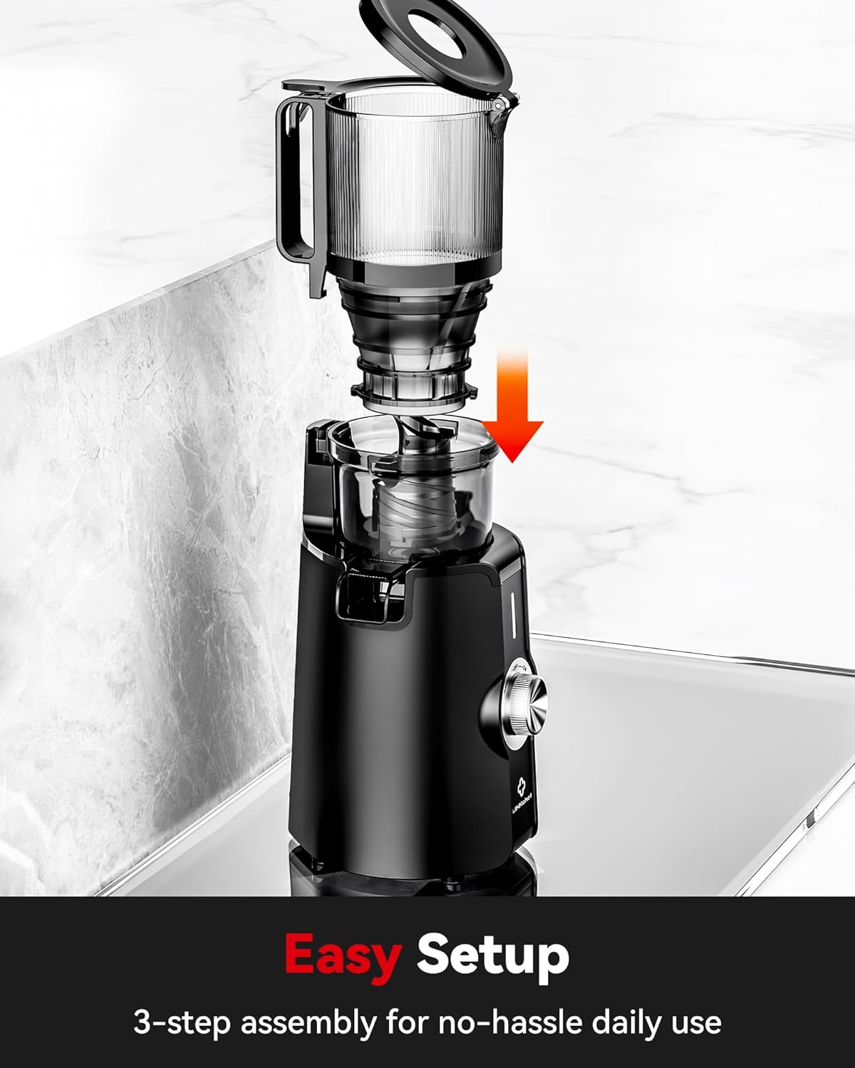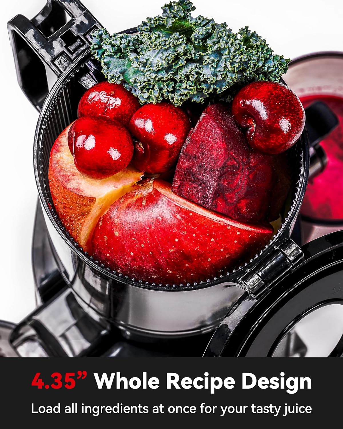 Self-Feed Juicer: 4.35 inches feed chute, 42oz capacity allows you to put the whole pieces of produce at once, eliminating prep work.