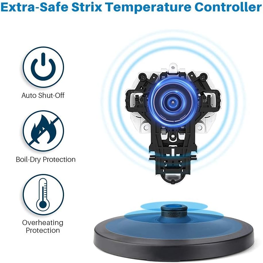 Maximum Safety – British STRIX thermostat controller, auto shut-off after the water is fully boiling. Boil-dry safety feature allow it to turn off if it detects there is no water inside. Double-Wall Construction Boils Water Quicker and Keeps Warm Longer