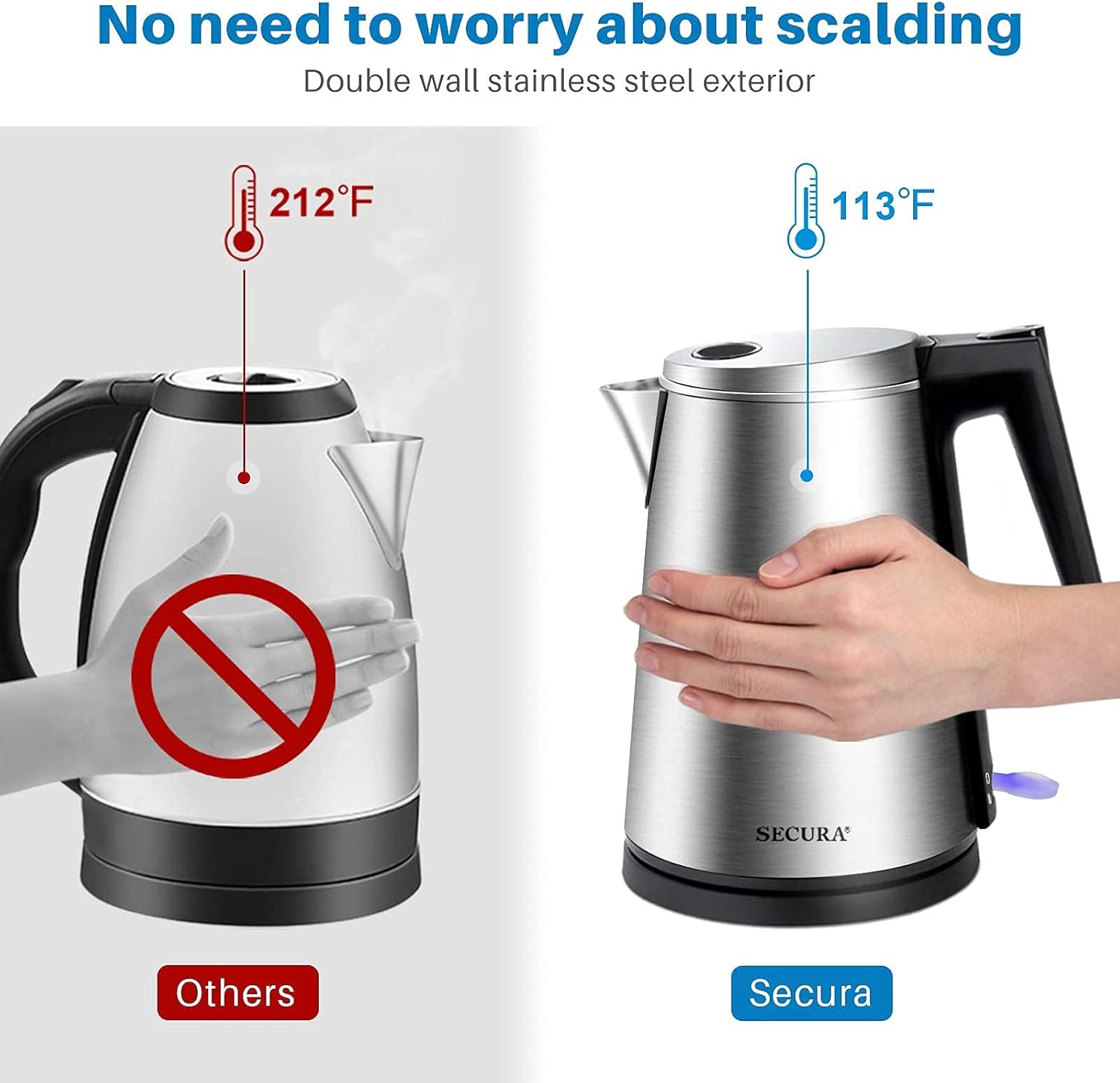 Superior Quality – Secura electric kettle is made of food grade 304 stainless steel which provides long-lasting performance. 100% BPA-free food-contact material for the safest, freshest water