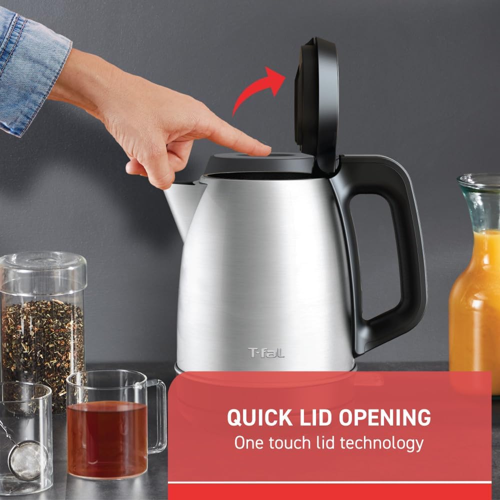 T-fal Element Stainless Steel Electric Kettle 1.7 Liter, Fast boiling 78 sec, Easy to use, Easy lid opening, 1500 Watts, Removable Anti-Scale Filter, Precision Pouring, Silver and Black