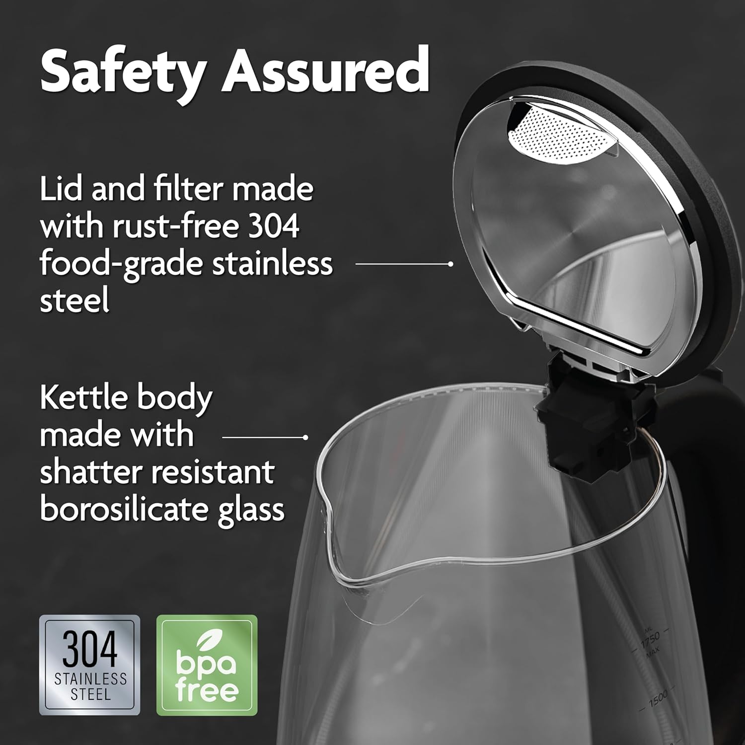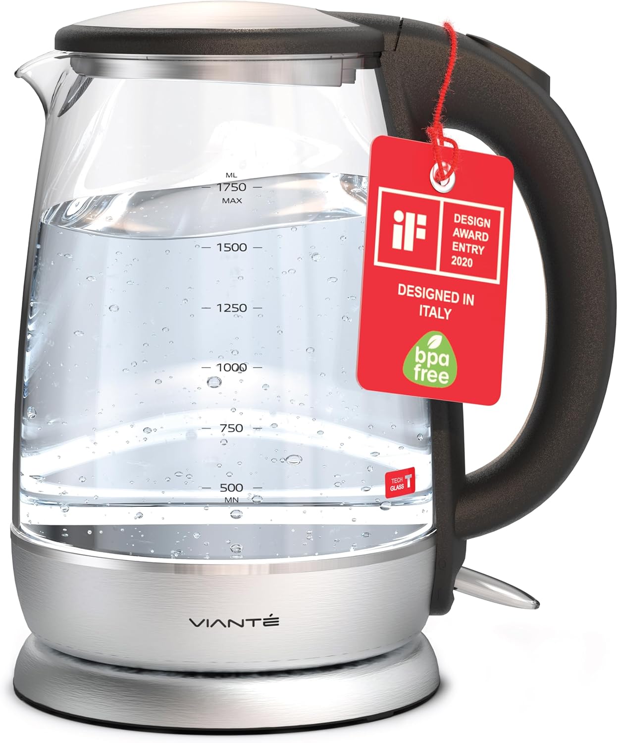 Vianté Electric Glass Tea Kettle. Fast Water Boiler. BPA-FREE. Stainless Steel & Borosilicate Glass. Designed in Italy. 1.7 Liters capacity.