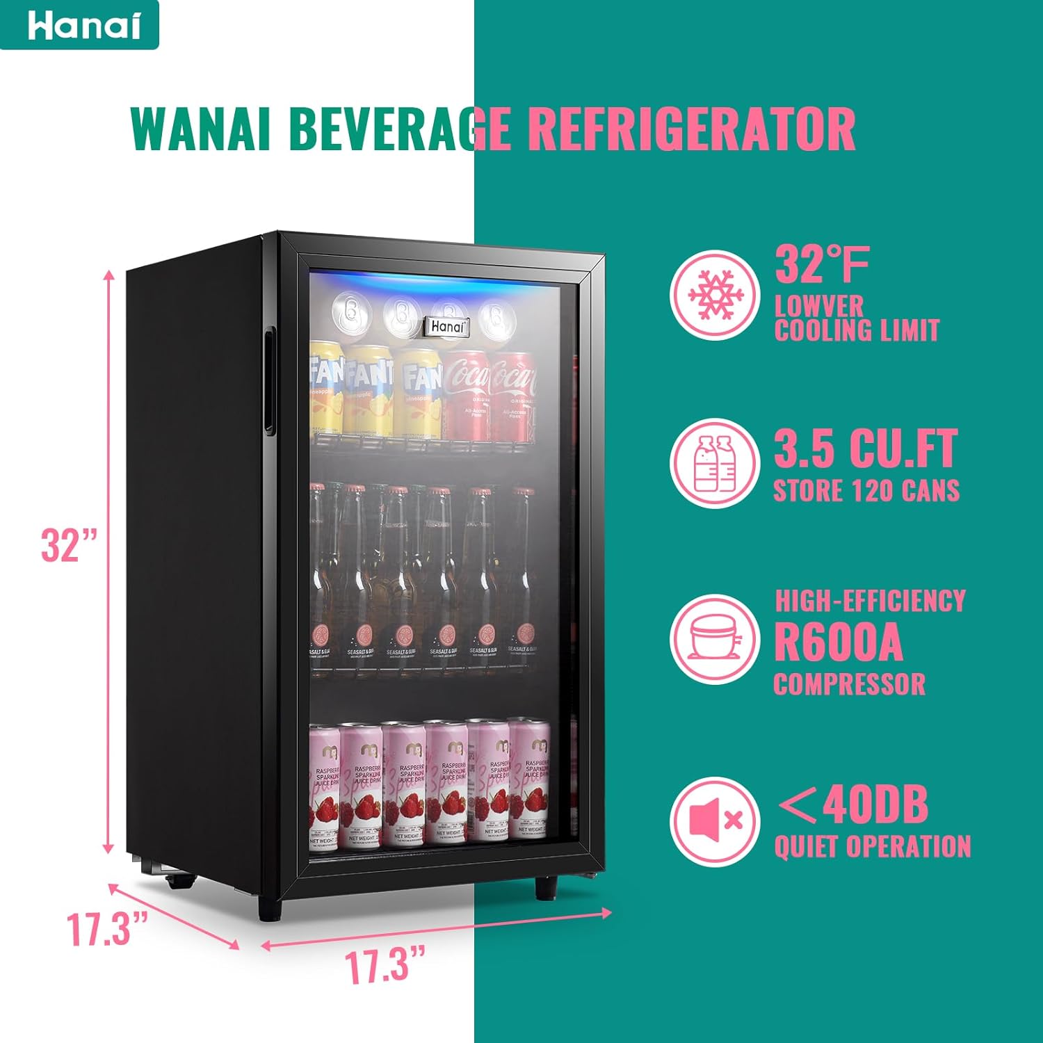 ·Combination of 3.5 CU.FT capacity and 17.3*17.3*32 inches size,gives you a whole new experience of drinking beverages.