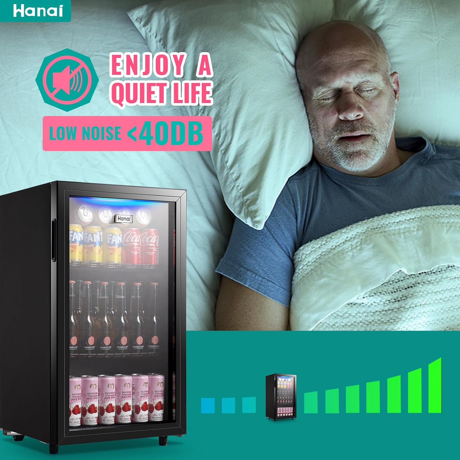 ADJUSTABLE TEMP CONTROL: Seven adjustable mechanical temperature control is easy for children or elders to operate; WANAI beverage refrigerator makes temperature quickly and quietly cool down, keeping all your drinks fresh and cool all day